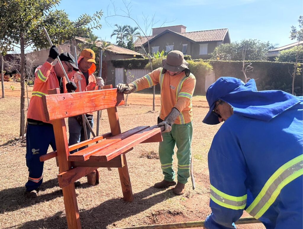 Comurg instala quase 1,8 mil bancos de madeira em praças de Goiânia em 2025