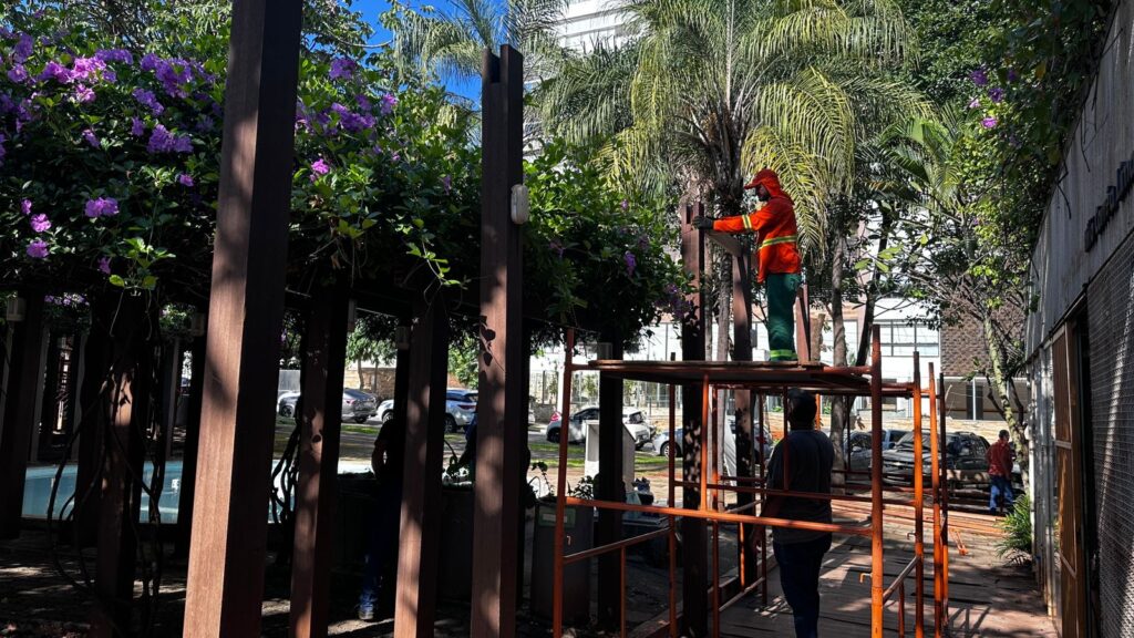 Outras regiões também são contempladas. No Parque das Laranjeiras, a Praça dos Namorados recebe pintura de equipamentos, poda ornamental, poda de árvores, varrição, manutenção do gramado e instalação de lixeiras. No Conjunto Anhanguera, a praça da Rua Carajás passa por manutenção na academia ao ar livre.