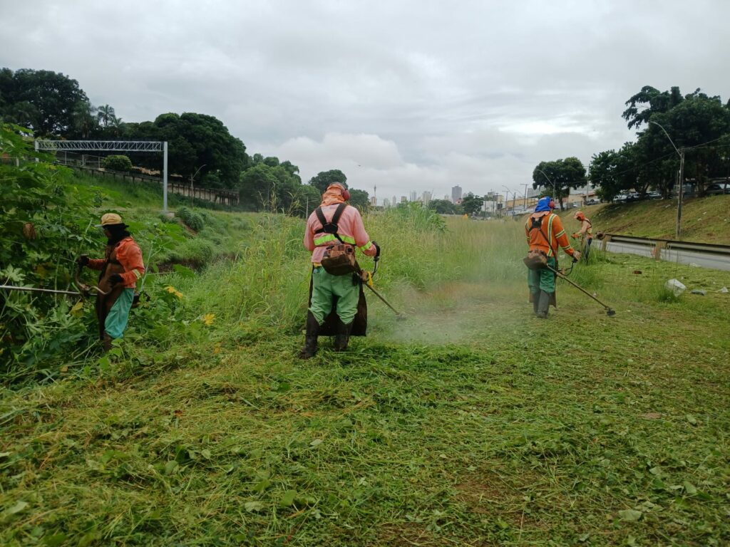 Nesta semana, as equipes atuam nos córregos Cascavel, em pontos como a ponte da Avenida T-9, no Jardim América, e Caveirinha, no Jardim Nova Esperança. Cerca de 12 servidores trabalham em cada frente de serviço, com roçagem manual, poda com equipamentos costais e retirada de vegetação que possa comprometer o escoamento da água.